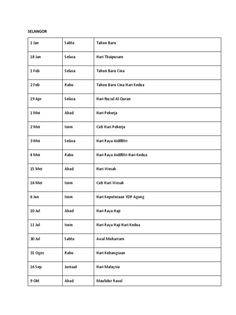 Klik di sini untuk kalendar cuti umum dan cuti sekolah 2017. Akta Hari Kelepasan 1961. Cuti Umum Selangor 2019.